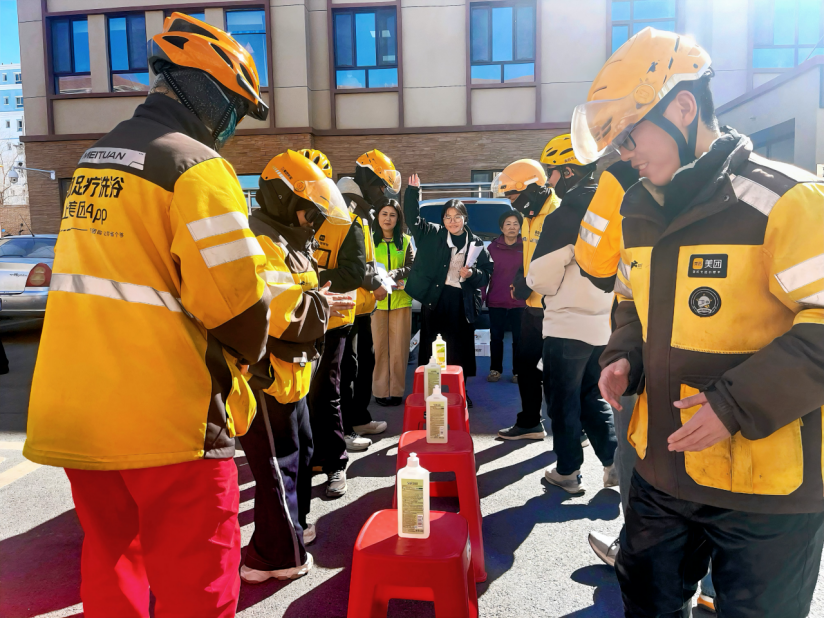 活动现场还设置了政策宣讲与安全知识普及环节。向新就业群体传递全国两会精神,邀请交警大队民警结合配送行业特点,现场讲解交通安全知识,提示骑行风险,为小哥们的平安出行保驾护航。