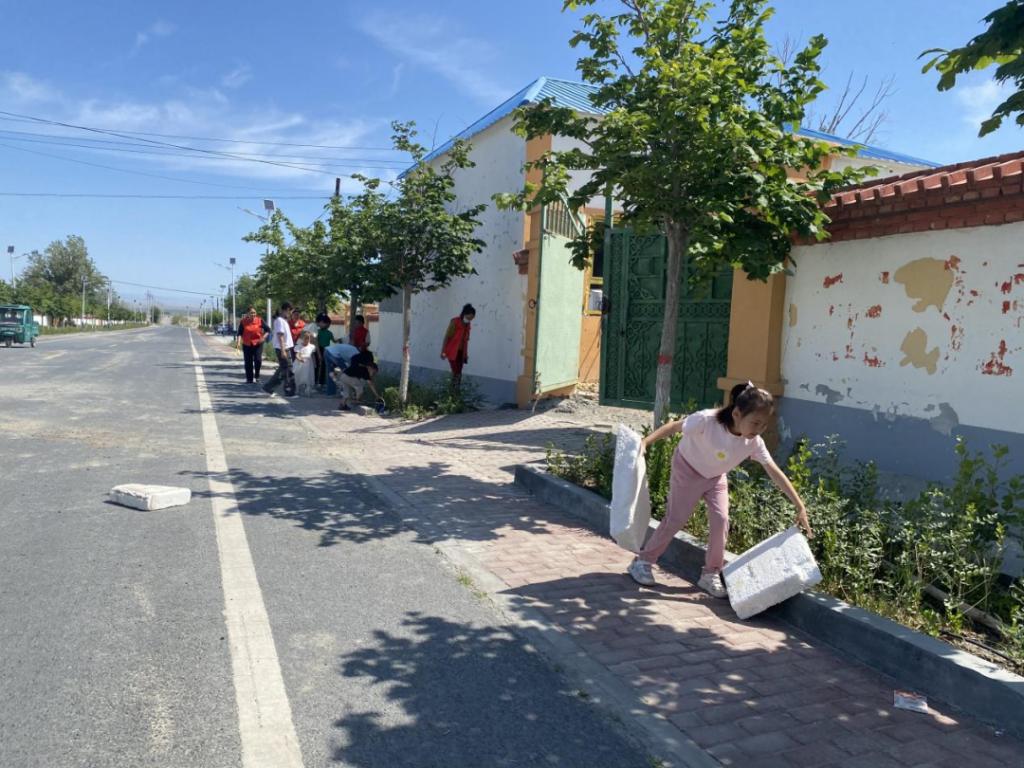 孩子们纷纷发表了自己的感言,七岁的吾珂莱说道:“保护环境,人人有责”,随后,“访惠聚”工作队第一书记李静带领孩子们开展实地垃圾清理,以身作则带领孩子们树立爱护环境的意识。