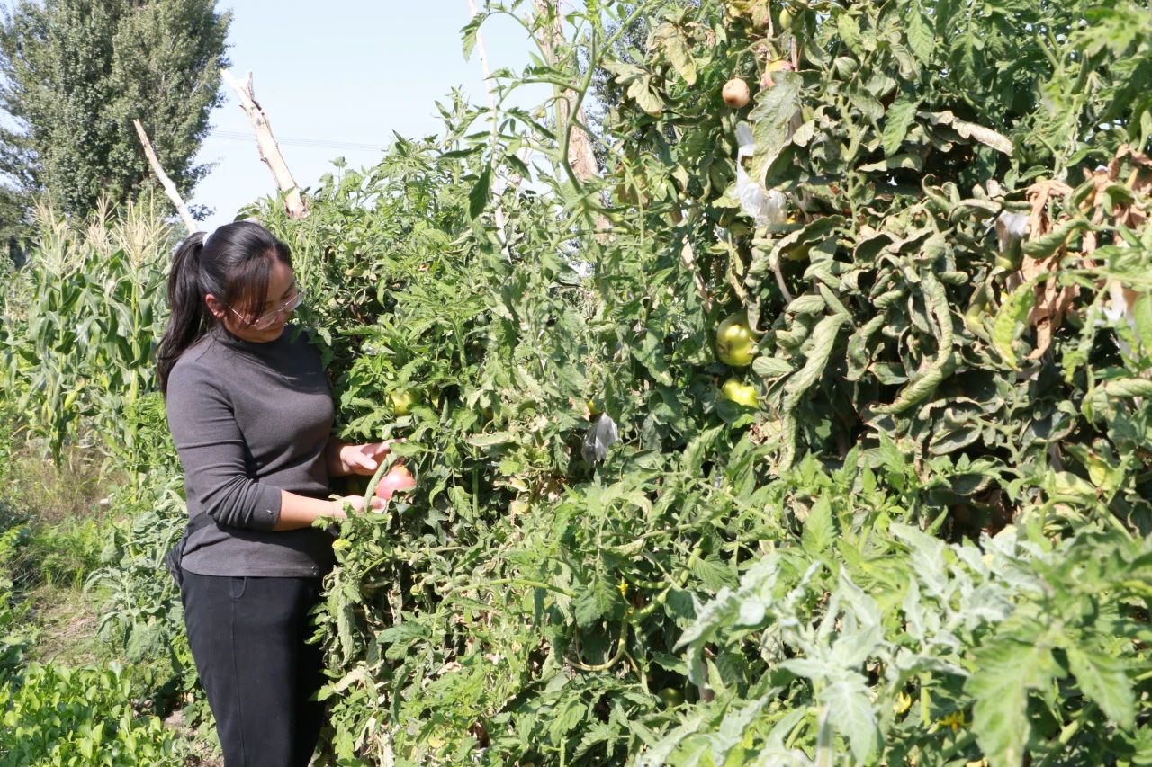 在托托新村村民李龙霞家的院子里可以看到,各类时令蔬菜长势喜人,各色花卉遍布庭院周围,到处都充盈的生机与盎然,一幅描绘着丰收的田园画卷徐徐展。虽然李龙霞的院子不大,但带来的经济效益可不小,据她介绍,光去年通过出售小院子的蔬菜就增加收入接近12000多元,今年,李龙霞的小院子不光种植了时令蔬菜和鲜食玉米,也种植了村委会发放的香妃海棠的树苗,明年后年等香妃海棠坐果,还能进一步增加收入。“自己种的菜不仅吃得放心,还可以拿出去售卖增加收入。”托托新村村民李龙霞说道。