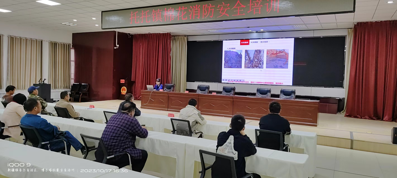 为进一步加强托托镇关于秋收棉花的消防安全工作,增强各村队种植户、轧花厂及安全员的消防安全意识和提高抵御火灾的能力,切实保障人民群众的生命财产安全,杜绝托托镇各村队厂区火灾事故的发生,近日,县消防救援大队在托托镇人民政府东大厅开展了对各村队、轧花厂、安全员的棉花消防安全培训会,通过火灾案例、火灾原因及防火知识三个方面的培训、普及以及消防安全知识,提高各村队种植户、轧花厂工作人员、安全员的消防安全防范、救援能力。