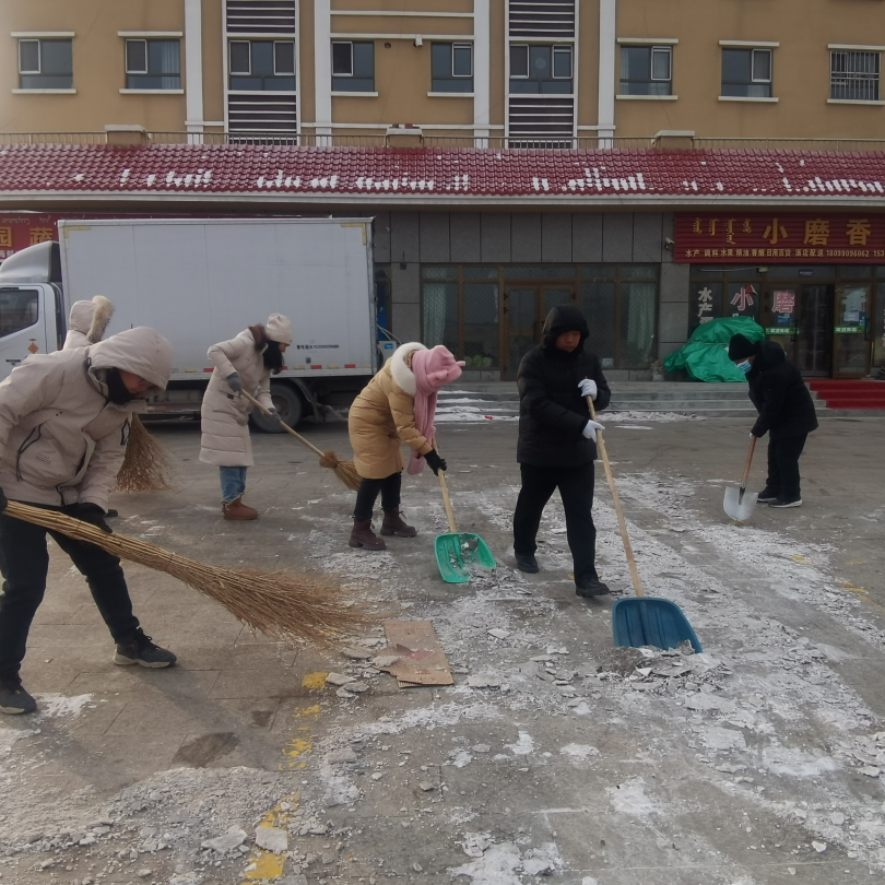 活动中,党员志愿者们齐心协力、不畏严寒,手持笤帚、铁锹等工具,分工协作对辖区内的积雪进行清扫。大家分工有序、配合默契,铲的铲、扫的扫,虽然天气寒冷,但大家干得热火朝天,忙碌的身影在皑皑白雪中构成了一道亮丽的风景线,为群众出行开辟出一条条“暖心路”。经过大家的共同努力,胡杨小区及商铺门前积雪很快被清理干净。