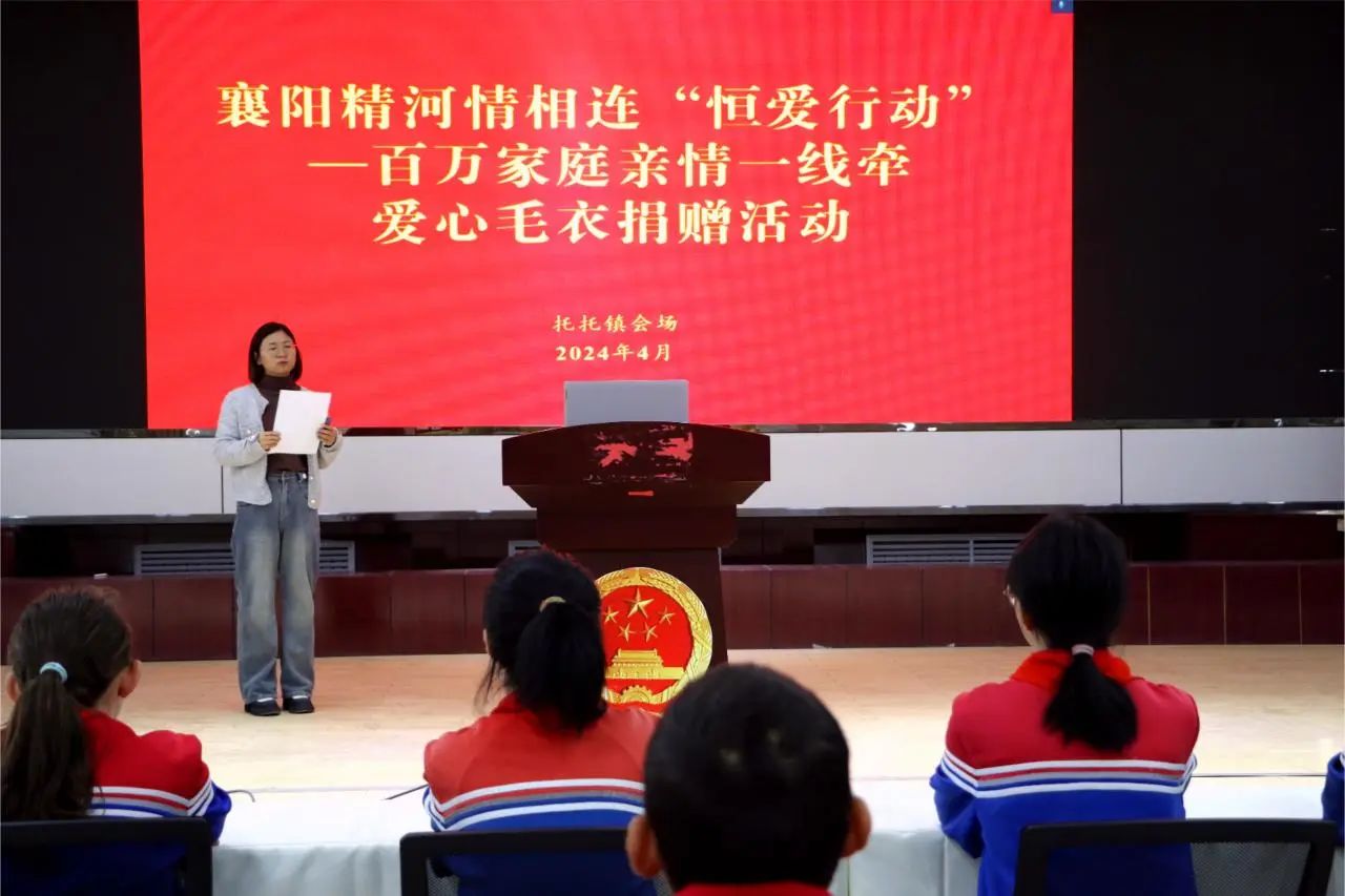 2024年4月2日,托托镇开展襄阳精河情相连“恒爱行动——百万家庭亲情一线牵”爱心毛衣捐赠活动,为精河县托托镇小学的同学们送上一份别样的温暖。活动通过视频连线方式进行,由托托镇副镇长、镇妇联主席吴菲同志主持,襄阳市草草义工协会会长耿辉、精河县妇联、协会部分成员、受赠学生参加了活动。