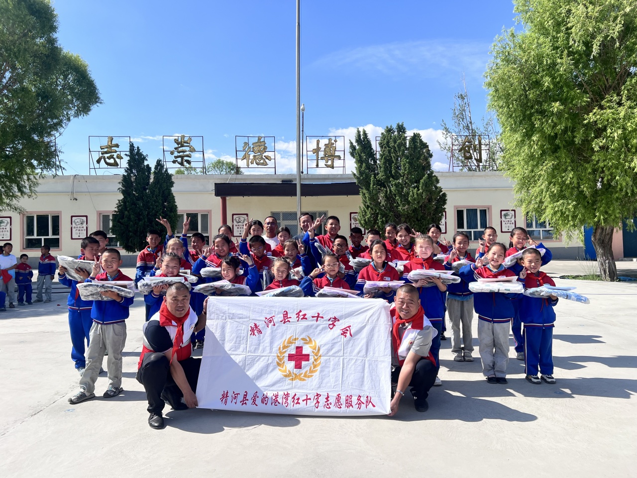 善举创造和谐、爱心传承美德。在“六一”国际儿童节即将到来之际,精河县红十字会爱的港湾红十字志愿服务队向托托镇小学的孩子们捐赠了一批学习用品。