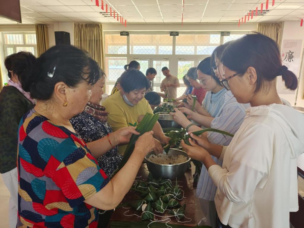 包粽子过程中,大家三三两两分好小组,协同互助、配合得当,折粽叶、填糯米、包红枣、葡萄干等步骤被她们轻松“拿捏”了,转瞬间一座座“粽山”就出现在大家面前。随后村干部和志愿者们将饱含节日祝福的粽子送给村里特殊家庭、困难党员、空巢老人的手中。