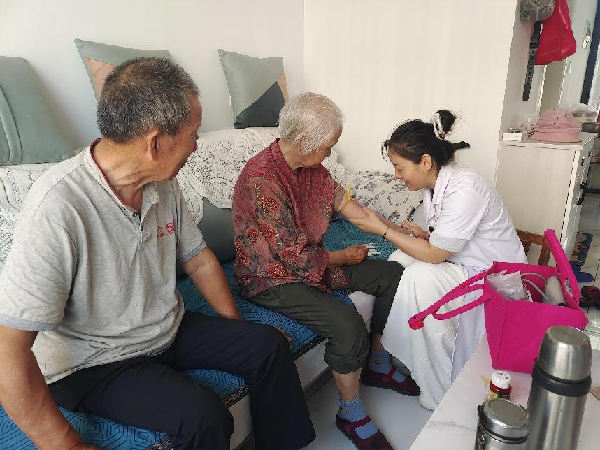 行动不便的高龄阿姨杨节清说:“辛苦你们了,这么热的天气,还上门为我们做体检。我们年龄大了,平时很少出门,子女不在身边,有了你们的守护、有了党的好政策,我们这些老年人真的感觉很幸福。”