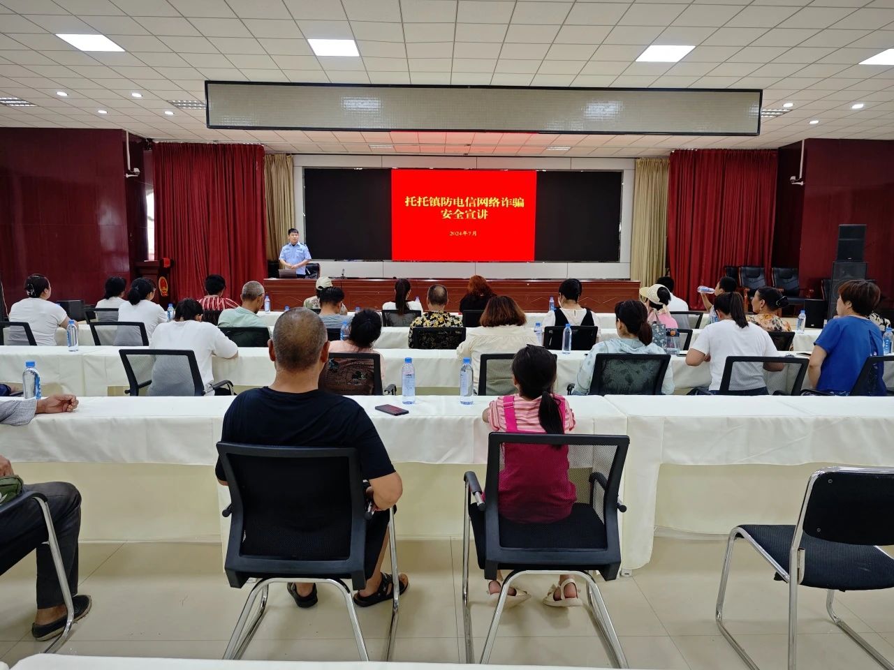为进一步提高辖区群众防范各类电信网络诈骗安全意识,遏制网络电信诈骗违法犯罪活动,切实增强防范意识和能力,保护财产安全,7月31日,托托镇联合派出所共同开展“防电信诈骗”安全知识宣讲。40余名个体工商户、农(牧)家乐负责人参加此次宣讲。