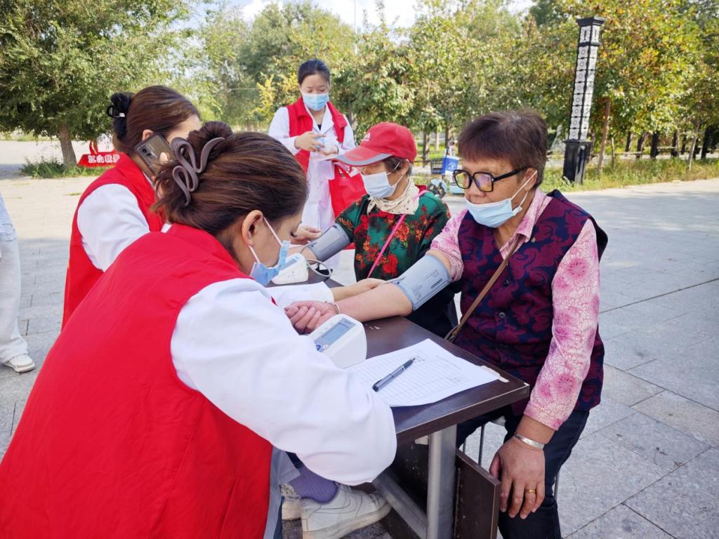托托镇卫生院党支部书记古丽加娜尔为居民测量血压、发放宣传品,还耐心解答居民关于高血压防治、慢性病用药等方面的疑问,强调健康生活方式在高血压防控中的重要性,倡导居民低盐低脂低糖饮食、适量运动、保持健康体重、戒烟限酒等健康行为。