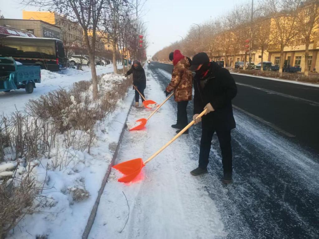 在春节来临之际,为防止道路结冰,保障辖区道路交通安全,预防交通事故的发生,组织群众开展清扫积雪活动,撒融雪剂,捡沿路沿线的垃圾,出动扫雪车辆,为居民打造干净整洁的生活环境。