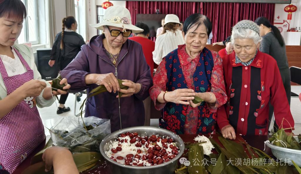 在托多克村,现场粽叶飘香,欢声笑语不断。经验丰富的党员志愿者手把手教阿姨们包粽子技巧,从折粽叶、填糯米到扎捆绳,每一个步骤都饱含着传统文化的传承。