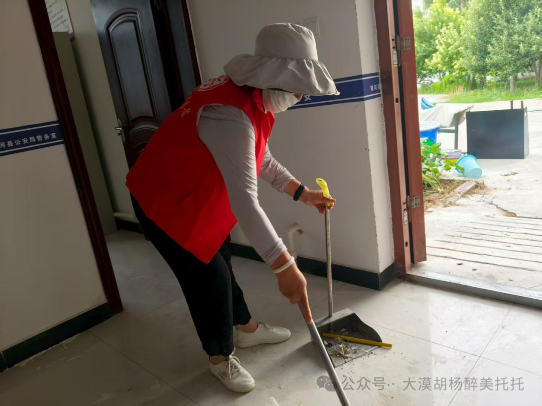 活动中,巾帼志愿者们分工明确、干劲十足:有的拿起拖把清理警务室地面卫生,有的提着水桶擦拭门窗玻璃和桌子,有的清理墙角的杂草和堆积的杂物,还有的对房前屋后的卫生死角进行重点整治。大家不怕脏、不怕累,配合默契,经过数小时的辛勤劳动,文化室内外环境焕然一新,地面干净整洁,物品摆放有序,周边杂草杂物被彻底清除,整体面貌得到显著改善。