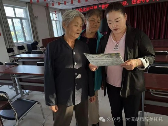 针对村民对老龄政策知晓度低、特殊老年群体不知如何享受福利的问题,村“两委”组建“政策宣讲队”,用“通俗化、场景化”方式打通政策宣传“最后一米”。线下,宣讲队深入村民家中,尤其聚焦特殊老年群体,用方言解读《中华人民共和国老年人权益保障法》中赡养义务、财产保护等核心条款,详细讲解失能老人护理补贴、高龄补贴等政策的申请条件、流程及所需资料。