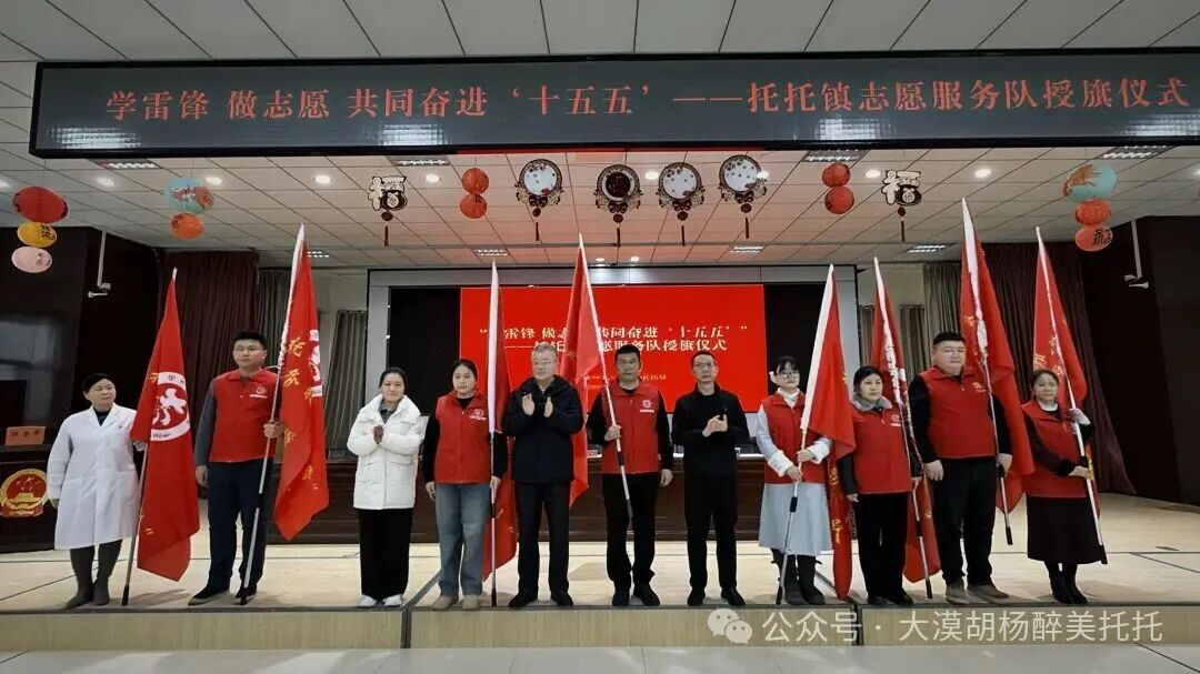 二、织密“一张网”整合,建强多元化志愿服务队伍。针对基层志愿服务力量分散、专业能力不足等问题,托托镇对原有志愿服务资源进行全面梳理整合,吸纳机关干部、村(社区)工作者、热心群众、返乡大学生等多方力量,组建覆盖广泛、结构合理的志愿服务队。授旗仪式上,统一配发志愿马甲、规范队伍标识,实现“统一名称、统一形象、统一管理”。同步建立志愿者信息库,根据队员专业特长、服务意愿分类建档,为后续精准匹配服务需求奠定基础。