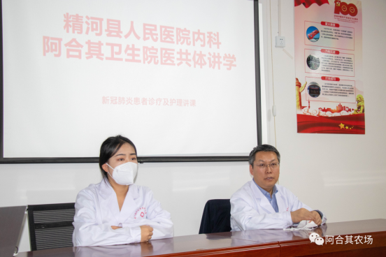 为进一步提高我场医护人员新冠病毒救治专业技能水平,全面提升阿合其农场卫生院医护人员的综合服务能力。1月5日,精河县人民医院内科主任齐文明和内科护士何秋艳到阿合其农场卫生院进行新冠病毒救治培训、科室管理、教学查房、学科发展等工作指导。