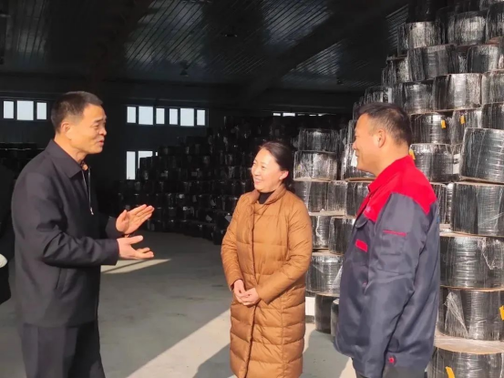 王彬书记来到兴晟塑业有限公司滴灌带生产车间,现场查看企业生产运行,听取滴灌带厂负责人尹利涛对企业基本情况的介绍,详细询问企业负责人滴灌带原料生产、再加工程序、电脑数码控制、流水线生产、产品打包封装等环节运行情况。王彬书记先后在薄膜生产车间、产品储备库房实地了解薄膜原材料加工、薄膜生产运行、产品销路、生产线在扩大、企业收入等情况。“企业的发展和成长离不开精河县党委的支持,企业正式投产后,我们依托县党委的大力支持订单销路得到了可靠保障,真的感谢党委对我们企业的扶持和帮助。”兴晟塑业有限公司负责人尹利涛说。“兴晟塑业有限公司是阿合其农场在2022年招商引资新建的滴灌带加工厂,厂房干净整齐、设施齐全、设备齐全,从融料加工到产品包装的每一步都井然有序、科学规范、环环相扣。该公司采取“国有控股、民营主营”混改经营管理模式,同时利用我场各队成立的合作社进行订单,实现节水灌溉产、供、销“一条龙”的服务,推进地膜生产加工再利用,在降低成本增加农民收入的同时,提高了地膜回收利用率,有效减少“白色污染”,实现国有资本与非公资本互惠共赢。”阿合其农场党委书记逯红梅说。调研中王彬书记听取了阿合其农场党委书记逯红梅对企业优化营商环境、招商引资、企业落地、生产运营、项目投资、劳动力转移、“党委+农牧投公司”、党支部+合作社+农户”等情况汇报。详细了解企业生产经营、发展规划、安全生产、经济发展、订单销售、促民增收等工作,并与逯红梅、企业负责人深入交流交谈,仔细询问企业在扩大产能、促进就业方面的情况,就推动企业实现经济高质量发展提出意见建议。