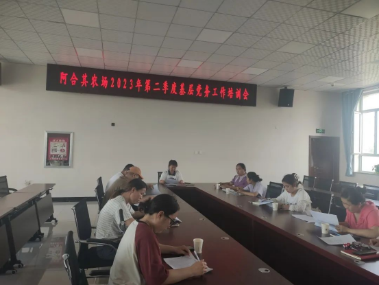 为进一步发挥党建引领作用,加强基层党组织建设,推动各基层党组织党建工作扎实有效开展,实现基层党组织全面进步、全面过硬,提升全场基层党建整体水平,6月12日下午,阿合其农场召开了2023年第二季度基础党务工作培训会。
