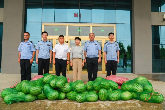 持续高温天气给一线干部职工带来了严峻的考验,但他们时刻坚守在自己的岗位上,顶着烈日挥汗如雨,认真履职尽责,维护社会稳定,给各族群众创造了良好的生活环境。近日,精河县阿合其农场开展“炎炎夏日送清凉 丝丝关怀沁人心”慰问活动,向精河县公安局、精河县消防救援大队、大河沿子镇公安局分局、阿合其农场派出所等在酷暑中坚守岗位的一线干部职工送去“夏日清凉”。在为一线职工送去清爽的同时,也为西瓜种植户解决了销售问题。“这么热的天,感谢阿合其农场给我们送来的西瓜,我们将继续发扬优良作风,更加出色地完成以防火、灭火和抢险救援为中心的各项工作任务,为精河县经济和社会发展起到更积极的作用。”精河县消防救援大队副队长许海龙说道。精河县阿合其农场党委委员、武装部部长杨帆说:“希望通过此次‘夏日送清凉’的活动,让炎炎夏日仍在一线工作的干部职工们能够放松身心,缓解疲劳,更让他们感受到我们的关心与爱护,提升干部职工的获得感、幸福感,为助力精河县高质量发展贡献力量。”