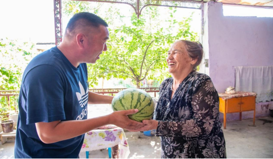 最甜的西瓜送给最亲的人,7月7日,农一队“访惠聚”工作队第一书记苏荣和阿合其农场党委书记逯红梅提着一个个饱满圆润的大西瓜送到村民家里,开展“西瓜送清凉,甘甜暖人心”活动,释放致富红利、共享丰收成果,凝聚“向心力” 、共筑“同心圆”。每到一户,逯红梅同志都亲切地与大家拉家常、问冷暖、聊发展,并真诚地对他们为农场做出的贡献表达谢意。逯红梅同志说:“农场的发展离不开大家的大力支持和无私奉献,百姓甜,才是真的甜。今后,我们将做大做优西瓜种植产业,让西瓜种植成为带动农民增收、助力乡村振兴的甜蜜产业,老百姓的日子也会像西瓜一样甜甜蜜蜜!”阿合其农场农一队坚持党建引领促发展,全面激发党建活力,通过党支部领办合作社,聚焦富民增收主题,打造“一村一品”发展新格局,红火了西瓜产业,鼓起了农户的“钱袋子”。2023年农一队绿丰富民种植专业合作社500亩西瓜净收益130万元,带动村民劳务创收49万元,实现了农业增效、农民增收的良好势头,走出了一条乡村振兴的“甜蜜路”。