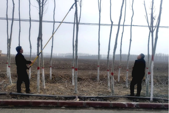 阿合其农场林业站站长任本旺说:“通过修剪树枝,可以使林木主干突出、侧枝分布均匀,改善防护林的通风透光条件,利于养分供给和新梢生长。有效减少病虫和火灾隐患,营造良好的林下环境。”