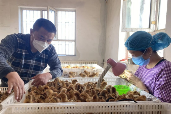 农五队党支部书记张汉民说:“这是开春以来的第一批小鸡,我们队干部都来这里帮忙,确保鸡苗能成功孵化并及时销售出去。”