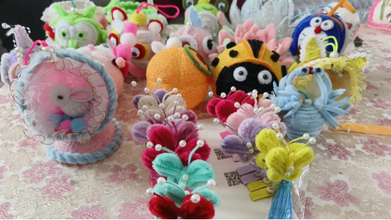 看着制作完成的手工艺品,韦宗丽开心地说:“我喜欢剪花、扎花,我将这些传统手艺融入扭扭棒中,编织出了许多的小动物、花花草草,感觉很有成就感。”