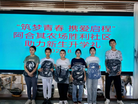 为助力辖区新生顺利开启新学期,传递社区关怀与温暖,2025年8月4日,阿合其农场胜利社区组织开展了“筑梦青春 携爱启程”升学礼赠送活动,为即将迈入新学段的孩子们送上精心准备的书包及学习用品,用实际行动为他们的“求学梦”添砖加瓦。