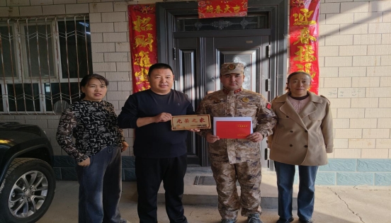 在亲切的交谈中,慰问组与家属拉家常、话冷暖,详细询问家人身体状况、家庭收支情况,重点了解生产生活中存在的实际困难,认真倾听诉求并逐一记录在册。“孩子在部队保家卫国,你们就是党和政府的牵挂,有任何困难随时联系,我们一定第一时间协调解决,让孩子在部队安心服役、无后顾之忧!”慰问小组负责人的话语朴实真挚,让家属倍感温暖。樊为民的父母激动地说:“这牌子挂在门上,是荣誉更是骄傲!感谢党和政府的惦记,我们一定常给孩子打电话,鼓励他刻苦训练、服从指挥,好好为国家效力,不辜负这份沉甸甸的信任与关怀。”