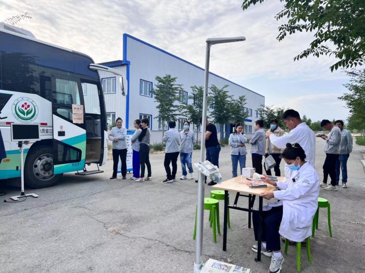 此次体检项目包括员工信息采集、一般体格检查、空腹血糖、血清尿酸、妇科B超、胸部X线检查、中医辨识体质、同型半胱氨酸等项目。体检过程中,医务人员利用多种形式向群众宣传国家基本公共卫生服务项目及全民体检工作带来的益处,倡导科学健康的生活方式,并对部分高血压、糖尿病、超重肥胖病人的不良饮食习惯进行健康饮食指导,出具药物治疗方案。