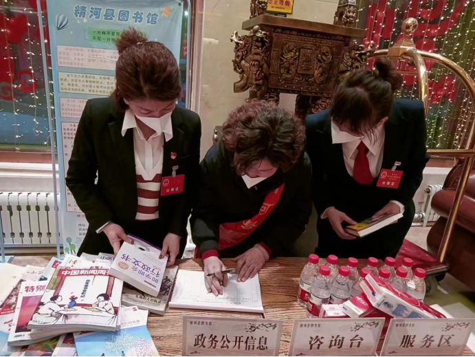 近日,正值精河县两会期间,精河县图书馆启动服务两会工作,开展“文化进万家—书香飘两会 馥郁在心间”活动。