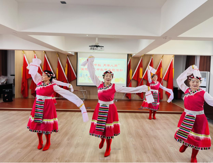 活动伊始,县图书馆退休老干部洪梅带领舞蹈队带来藏族舞蹈《画你》,老年大学舞蹈队带来柔力球节目《飞龙两套》等精彩演出,还有轻松愉快的猜灯谜、抢凳子等趣味游戏。独具特色的舞蹈,回味悠长的旋律,妙趣横生的游戏感染着现场的每一个人,观众热情高涨,连连叫好。大家还不时拿出手机拍摄照片、录制视频,记录精彩瞬间,留住美好一刻,把融情活动推向了高潮。群众李新花说:“今天开展的迎中秋、庆国庆的活动内容丰富、形式多样,我们都非常喜欢。祝愿我们的祖国繁荣昌盛,人民生活越来越幸福。”