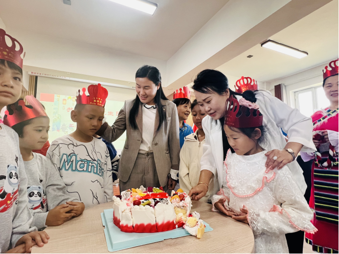 随后,伴随一首欢快的《生日快乐》歌,精河县图书馆为10月份过生日的小朋友举办“爱心生日会”,准备爱心蛋糕,把关爱和温暖送到孩子们身边。小朋友排祖拉·艾买提说:“非常开心能和小伙伴们一起过生日,一起玩游戏,谢谢图书馆的阿姨为我们举办的生日会,让我们一起过了一个很有意义的生日。”