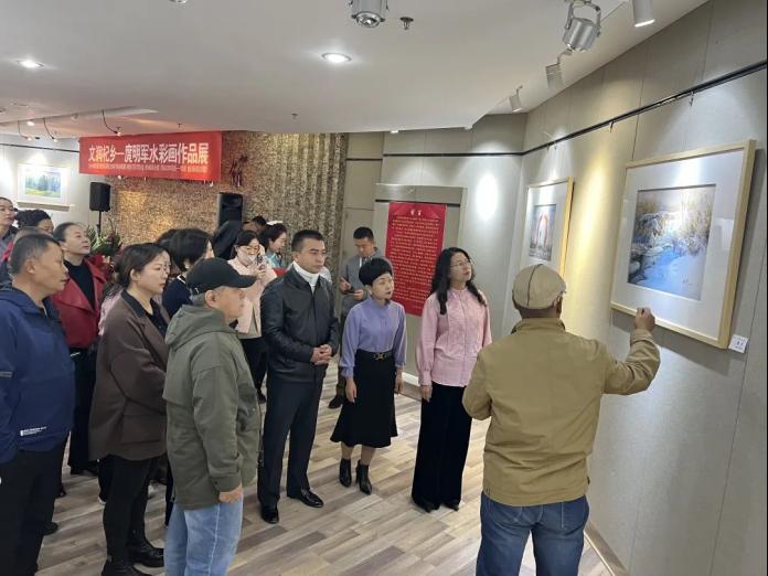 开幕式后,庹明军与嘉宾一同参观水彩画作品,详细讲解每一幅作品的灵感由来、创作的方式方法。一幅幅意境悠远、光影通透、色彩明快的作品深深感染了在场观众。“观看了画展深受震撼,庹明军老师是精河本土画家,他用自己的画笔绘出了家乡精河的美景及人民美好的生活,展现了家乡的发展变迁。”书画爱好者彭科勇说。