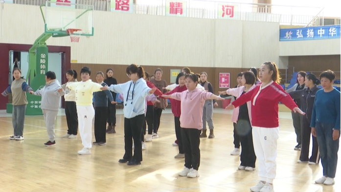 “大家注意动作……”11月3日,2023年精河县女性社会体育指导员培训班(健身操三级)在县体育馆举办,来自全县乡镇场、街道的67名学员参加了培训。