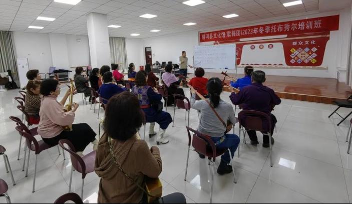 11月10日至11月19日,精河县文化馆举办2023年冬季托布秀尔培训班,来自全县的30名托布秀尔乐器爱好者参加培训。培训中,授课老师帮助学员们调试琴弦,采用理论学习与示范操作相结合的方式,围绕乐器构造、识谱方法、乐曲演奏指法、演奏气息控制等内容进行讲解,学员们互相交流,共同探讨,学习氛围浓厚。