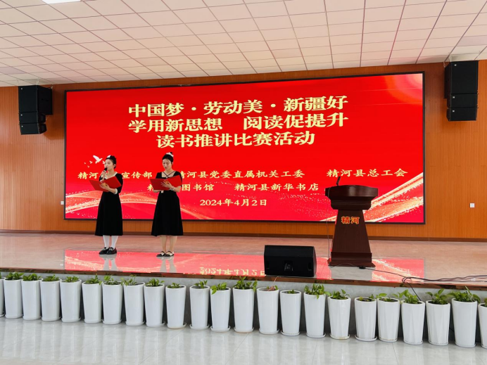 精河县图书馆开展“再发现图书馆 共读现代文明”4·23世界读书日系列活动之“中国梦·劳动美·新疆好学用新思想 阅读促提升”读书推讲比赛活动