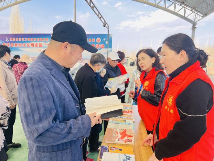 为深入学习贯彻党的二十大和二十届二中全会精神,学习贯彻习近平文化思想,广泛汇集各方面力量,巩固自治区文明城市创建成果,4月7日,精河县图书馆在茫丁乡农贸市场开展“为民巴扎”志愿服务活动。