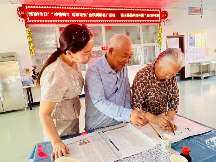 活动中,图书馆工作人员为大家详细讲解端午节的历史来源、风俗习惯,共同感受传统节日中蕴含的爱国情怀。随后,开展了包粽子活动。捋粽叶、装糯米、填红枣、封粽口、系棉线,一个个色泽青绿、饱满漂亮的粽子就包好了,大家亲自动手增添了节日的仪式感,营造了欢乐祥和的节日氛围。同时,福利院书法爱好者现场创作,笔法刚劲有力、行云流水,墨香和粽香交织出中华优秀传统文化的传承。