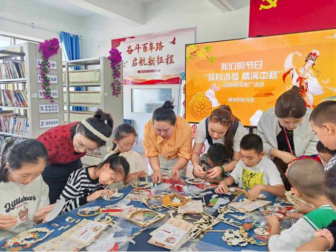在这个丹桂飘香、明月皎皎的时节,为弘扬中华优秀传统文化,帮助青少年进一步了解中秋佳节的习俗,培养孩子的动手操作能力,提高孩子对中秋节的认知能力。9月8日,精河县图书馆开展“我们的节日”中秋节系列活动之“探月逐梦 情满中秋”全民阅读推广活动。