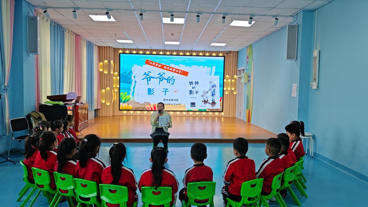 随后,精河县图书馆工作人员为现场的幼儿们讲述了《爷爷的影子》等绘本故事,通过声情并茂的讲述、生动有趣的提问,带领孩子们走进绘本的世界共同探寻其中的乐趣和深意。幼儿们聚精会神地聆听,时而积极举手发言,分享自己的阅读体验和感悟,现场一片欢声笑语。
