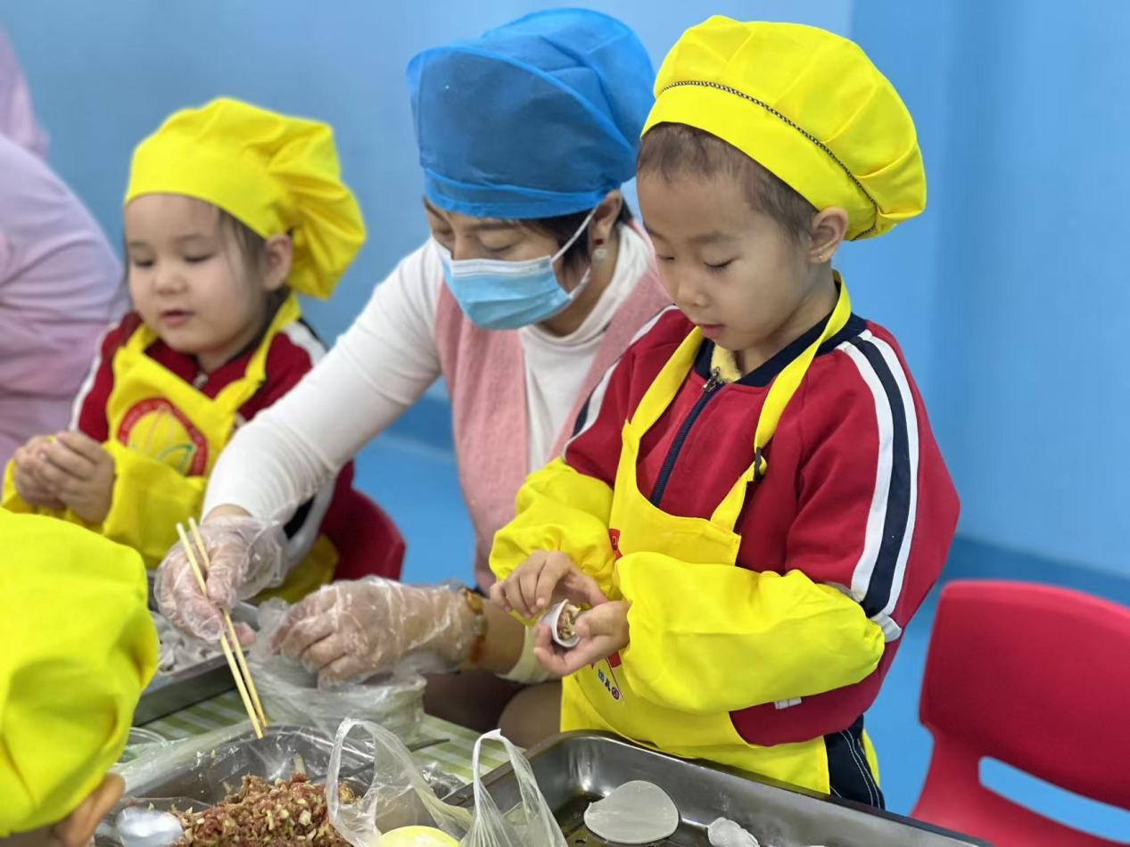 最后,孩子们既兴奋又认真地参与到包饺子的过程中。有的孩子小心翼翼地将馅料放在饺子皮上,有的孩子努力地捏出饺子的形状,尽管包出的饺子形态各异,却都饱含着孩子们满满的心意。饺子煮熟后,大家一起将饺子与亲手绘制的小贺卡进行分装,送给坚守岗位的工作人员,献上温馨的祝福,让各岗位的工作人员感受到孩子们的爱心和温暖。