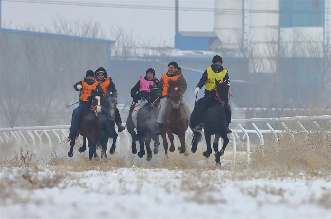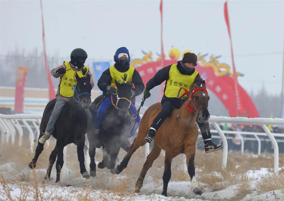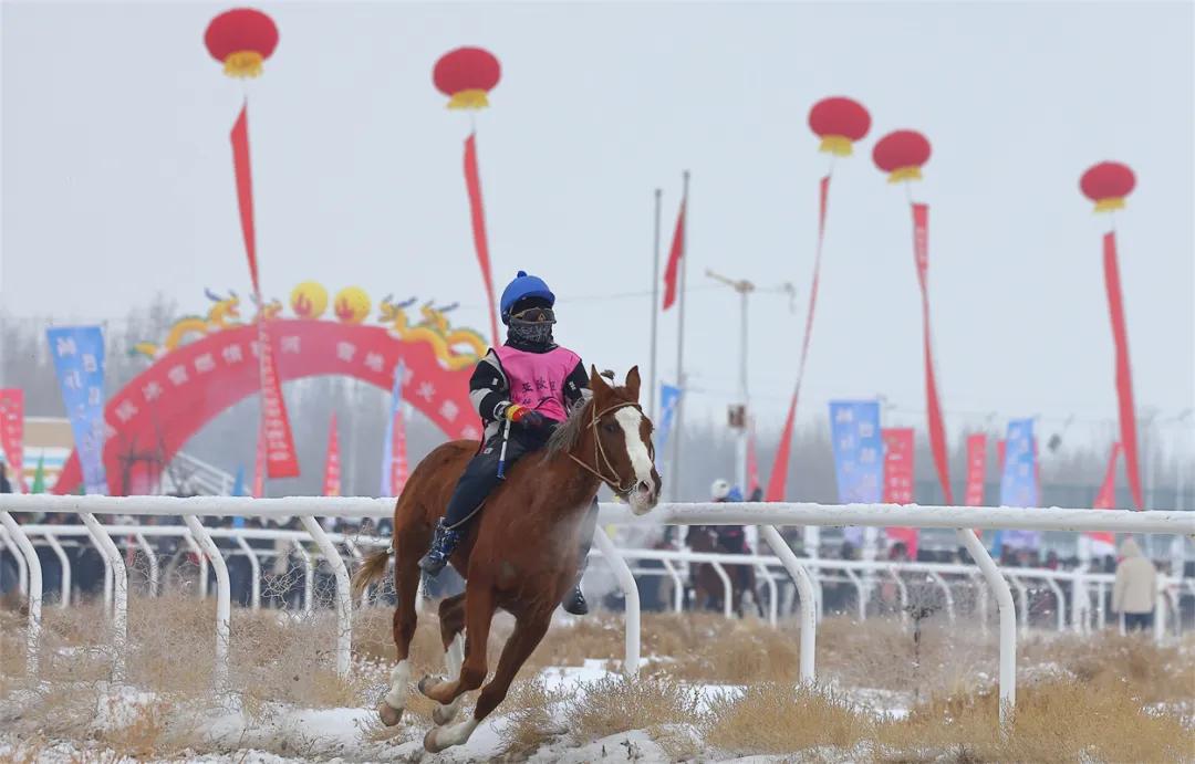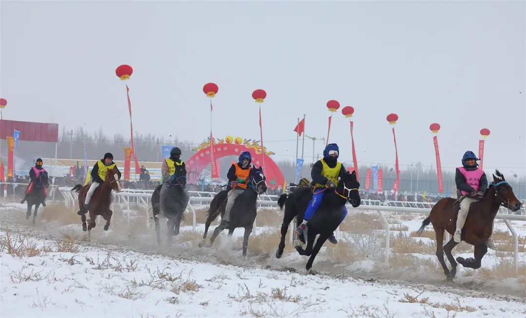 当天上午,在参加完丰富多彩的民俗风情展演和雪地越野车拔河后,雪地赛马会正式拉开序幕。伴随着观众的欢呼声,各组参赛选手们紧握缰绳,赛马蓄势待发。一声令下,骏马如离弦之箭在赛道上疾驰而过,骑手们你追我赶,为现场观众和游客带去了一场视觉盛宴,赢得了阵阵掌声和欢呼。