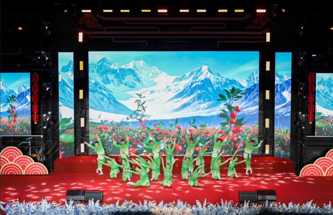 整场晚会突显精河地方文化特色,紧扣时代旋律,贴近群众生活,形式多样、内容丰富,涵盖了舞蹈、曲艺、民乐、小品、诗朗诵等多种艺术形式,不仅展现了精河人民的热情与活力,也表达了全县人民对新一年美好生活的向往和期待。