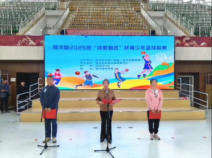 4月16日,精河县2025年“体教融合”杯青少年篮球联赛在县体育馆精彩开赛。县政协党组成员、副主席邓海红出席活动。
