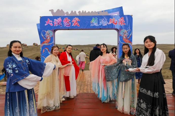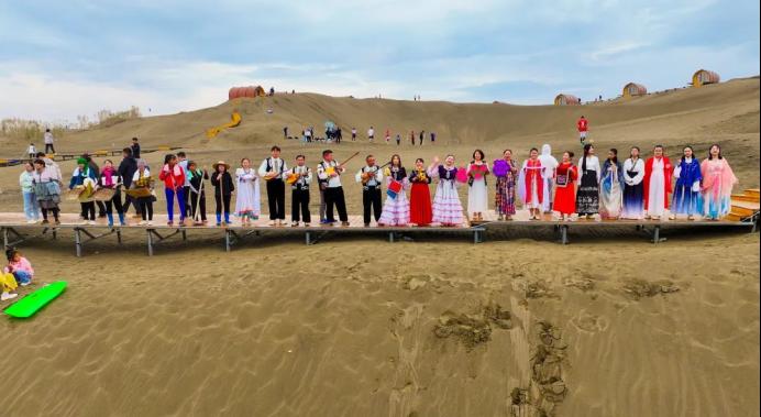 “第一次走进沙漠,被眼前的壮阔震撼了!这场T台秀也是很有特色,不同民族服饰与沙海交相辉映,美得像幅画卷。”来自外地的游客王静波一边翻看手机里的照片,一边赞叹。