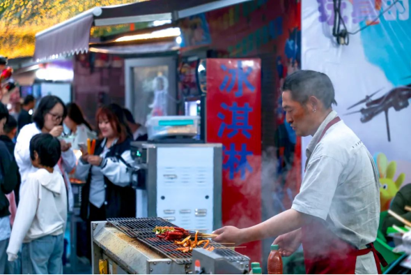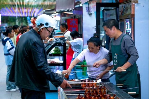 除了炸裂耳膜的音浪,美食长廊同样人气爆棚。烤全羊的焦香、红柳烤肉的烟火气,搭配现调特饮的清爽,让观众在酣畅淋漓的视听享受后,味蕾也得到极致满足。“一边跟着节奏蹦迪,一边品尝地道美食,这种体验太绝了。”游客李茜举着刚出炉的烤串赞叹道。