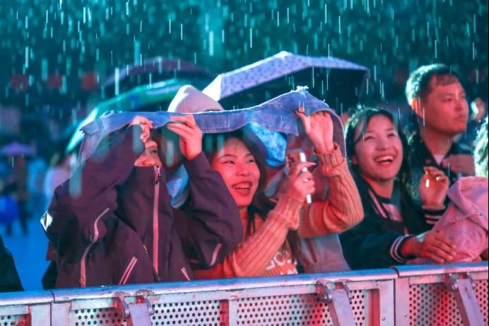 “灯光与音乐彻底点燃了夜晚,虽然下雨了,但是现场氛围很好,特别嗨。”来自深圳的游客周华兴奋地说,“精河县的城市环境非常优美,群众很热情,生态园周围的特色美食味道也非常好,今后有机会我还会再来美丽的精河。”舞台下,年轻男女跟着DJ的节奏高举双手,孩童在家长怀中随韵律摇晃,连过往的路人也被这股热浪吸引,纷纷驻足加入狂欢。