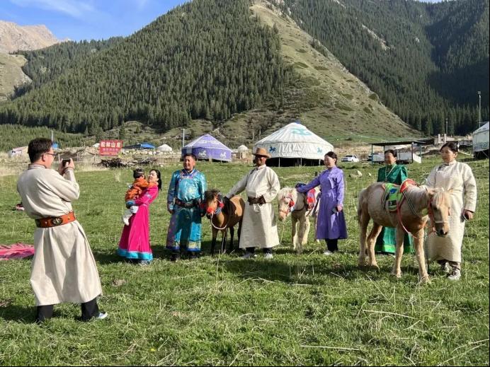 此次活动创新“非遗+旅游”模式,通过非物质文化遗产展演、文化集市、非遗展览、流动博物馆进景区等活动,将非遗深度融入景区游览体验中,为游客呈现深厚的文化底蕴。其中,“非遗焕新彩国潮耀天山”精河县非物质文化遗产展演暨进景区活动堪称亮点。长调悠扬空灵,仿佛将观众带入广袤无垠的草原;川剧变脸瞬息万变,尽显传统戏剧的神秘魅力;剪纸服饰创意十足,非遗技艺与艺术表演完美融合,让观众身临其境感受非遗的博大精深。