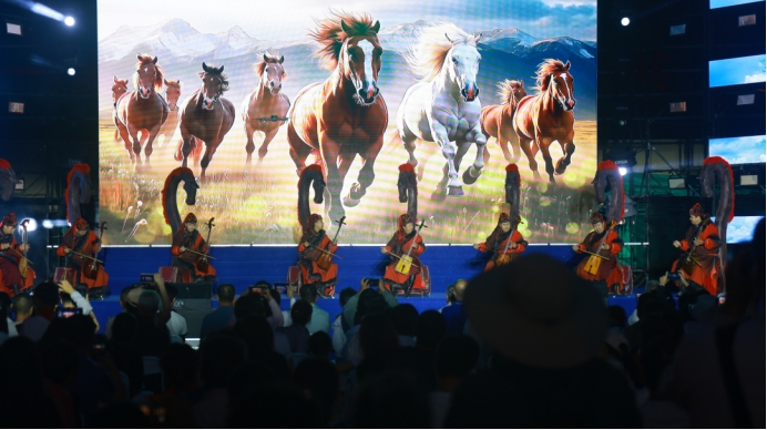 夜幕降临,开幕式文艺晚会以一场流光溢彩的视听盛宴点燃全场。《永远是一家》《相约博尔塔拉》、马头琴齐奏《万马奔腾》等节目,再现草原壮阔,展示博州的独特魅力。湖北省艺术家带来的歌曲《望襄阳》、花鼓戏《十二月等郎》等节目,凭借精湛演绎将气氛推向高潮。