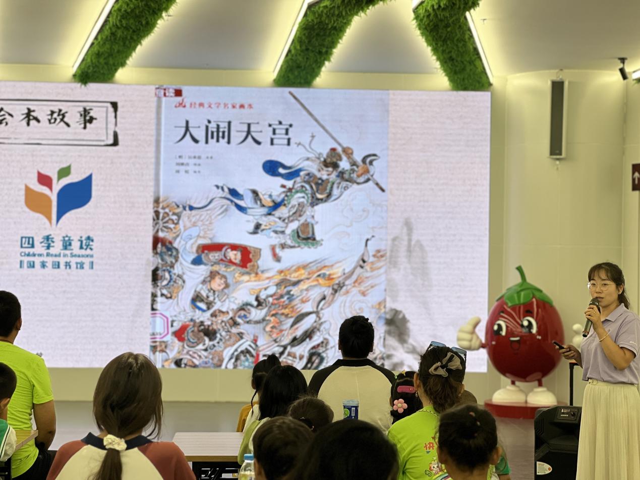 活动开场,州图书馆的段老师以充满童趣的语言、丰富的肢体动作,将孙悟空破石诞生、勇闯龙宫夺宝、不服天庭管束大闹天宫的精彩情节一一呈现。讲解中,老师还设置互动环节,引导小读者思考故事里的勇敢、正义等品质,孩子们踊跃举手发言,现场气氛热烈。