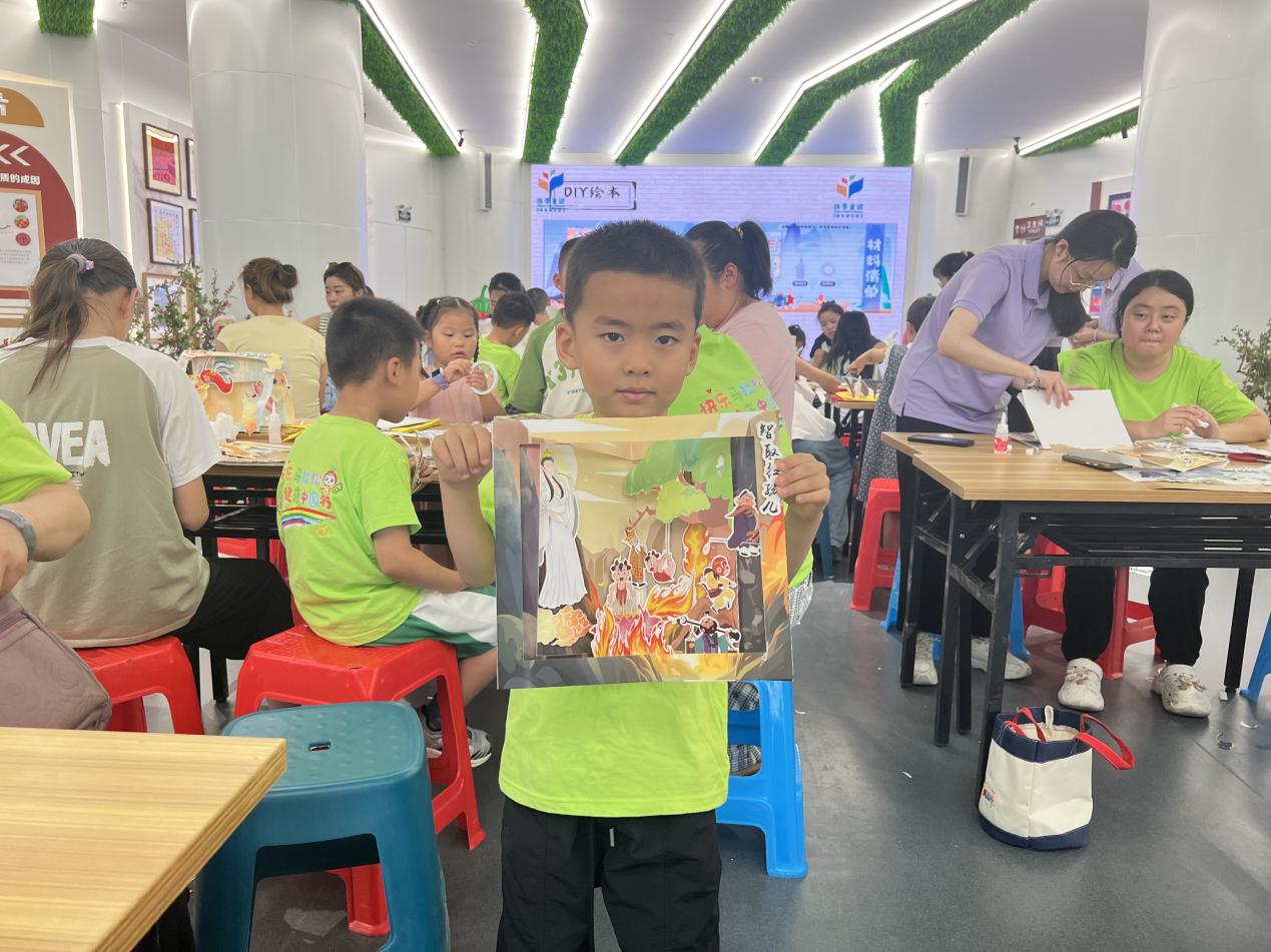 随后,进入趣味十足的立体书制作环节。在老师示范与指导下,小读者们发挥奇思妙想,动手制作立体书。有的孩子剪出孙悟空挥舞金箍棒,用折叠技巧让其“站立”在书页;有的精心绘制花果山、天宫等场景,通过穿插、粘贴等方式,将平面画面变为立体奇幻世界。制作完成后,小读者们迫不及待地向家长展示自己制作的立体书。家长们赞不绝口。表示此次活动形式新颖,既让孩子深入领略传统文化魅力,又锻炼了动手和思维能力,希望图书馆今后多举办类似活动。
