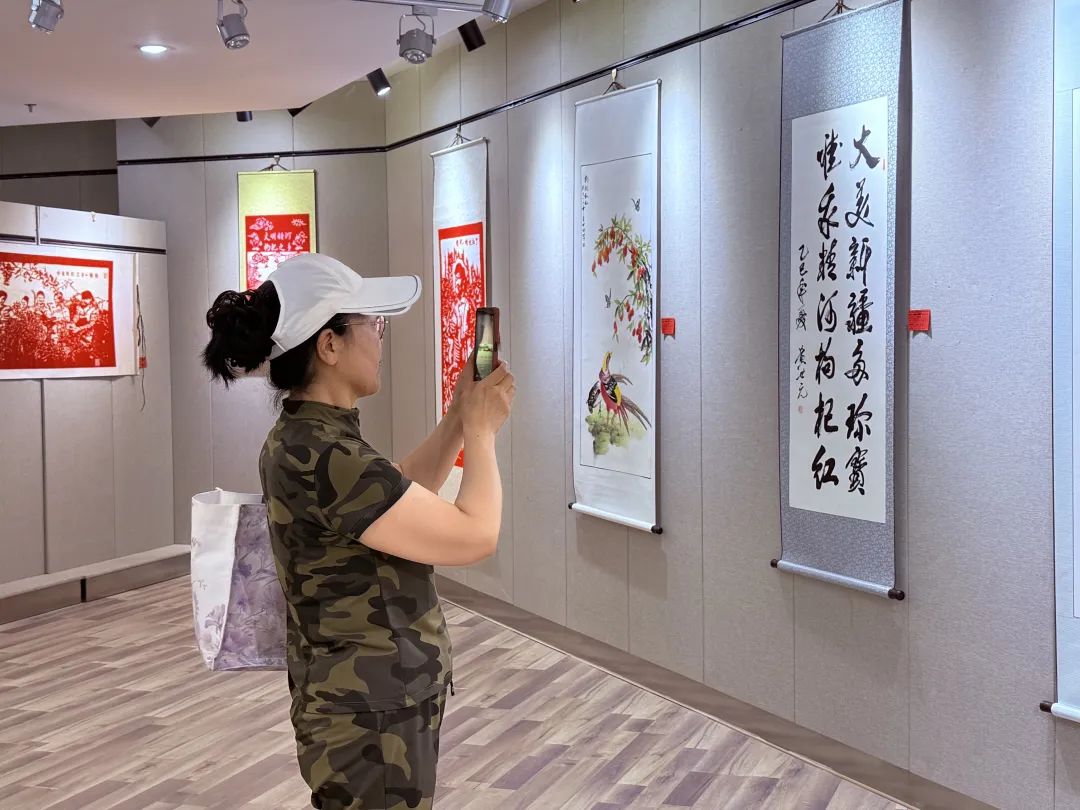开幕式上,主办单位宣读了作品展收稿情况。随后全体与会人员共同参观了作品展。一幅幅饱含深情的作品映入眼帘,诗文作品《杞乡行》用优美的文字描绘出枸杞之乡的独特魅力;书法作品《精河枸杞赋》以苍劲有力的笔触展现了精河枸杞的深厚底蕴;美术作品《枸杞玲珑俏》通过细腻的笔触勾勒出枸杞的灵动之美;剪纸作品《枸杞之乡》以精巧的工艺呈现了枸杞种植的热闹场景;农民画《红彤彤的生活》则用鲜艳的色彩描绘出当地百姓因枸杞产业而蒸蒸日上的生活。这些作品不仅凝聚了创作者对精河枸杞的深厚情感,更饱含着对家乡的无限热爱,吸引了众多爱好者驻足观看,大家不时发出赞叹之声,沉浸在艺术与文化的氛围中。